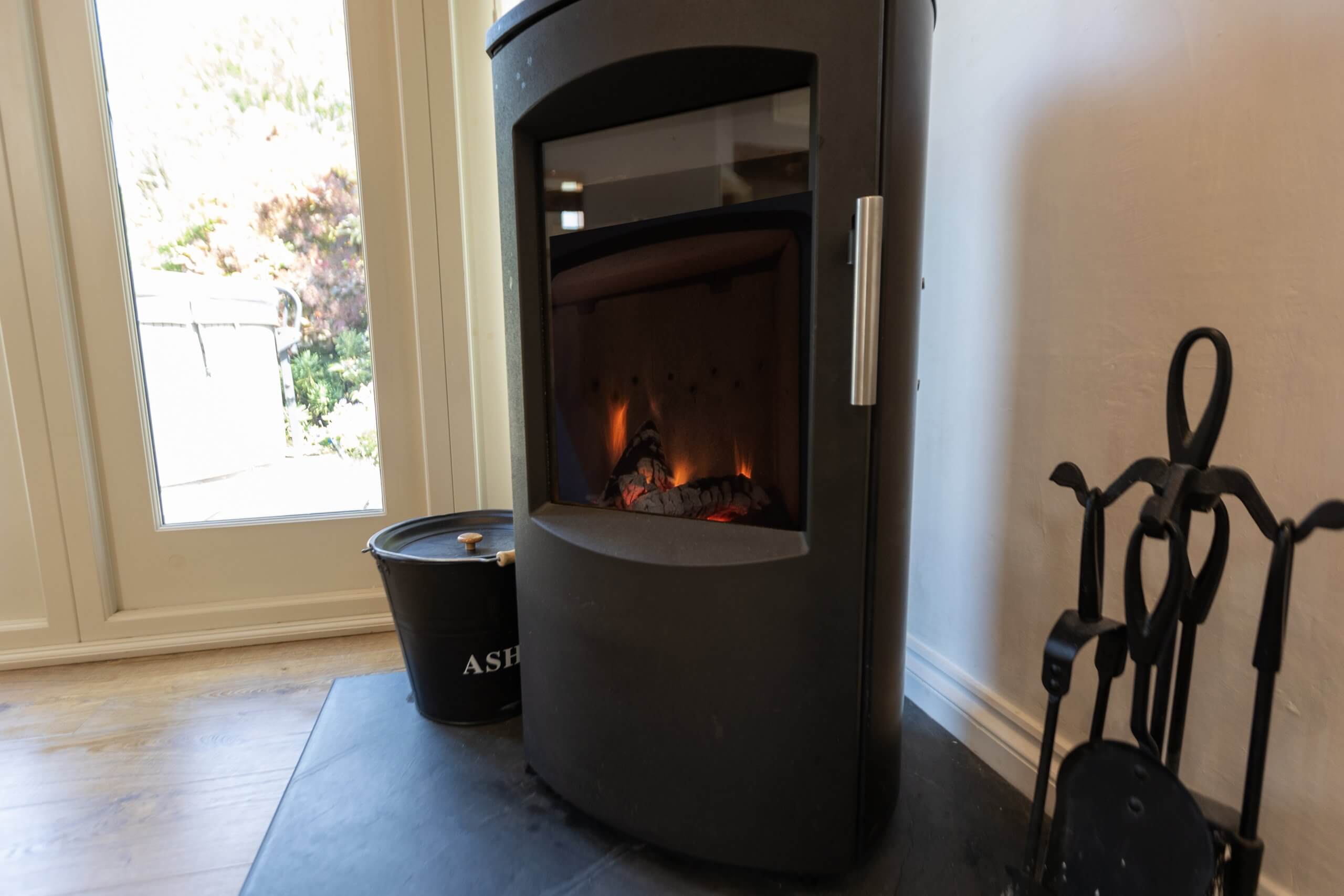 Wood burning stove, underfloor heating, plush seating, adjustable bronze mood lighting, 46” Smart TV, iPod docking station